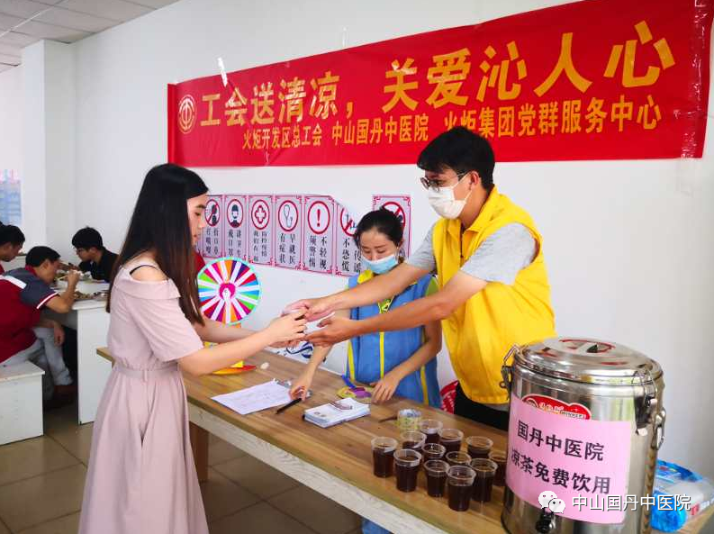 中山国丹中医院首当其冲为职工们送上了广东凉茶,让广大企业一线职工感受到来自火炬开发区如“娘家人”般的关怀与温暖。对他们战高温、斗酷暑,为保障群众健康而坚守敬业的精神表示高度赞扬。志愿者们亲切嘱咐大家做好防暑降温、确保身体健康。